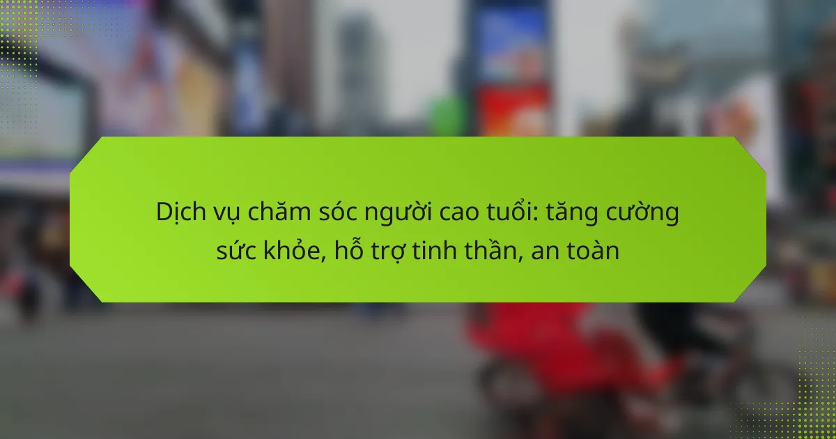 Dịch vụ chăm sóc người cao tuổi thường bao gồm nhiều khía cạnh nhằm tăng cường sức khỏe, hỗ trợ tinh thần và đảm bảo an toàn cho người cao tuổi. Những dịch vụ này không chỉ tập trung vào y tế mà còn bao gồm các hoạt động sinh hoạt hàng ngày và giải trí.