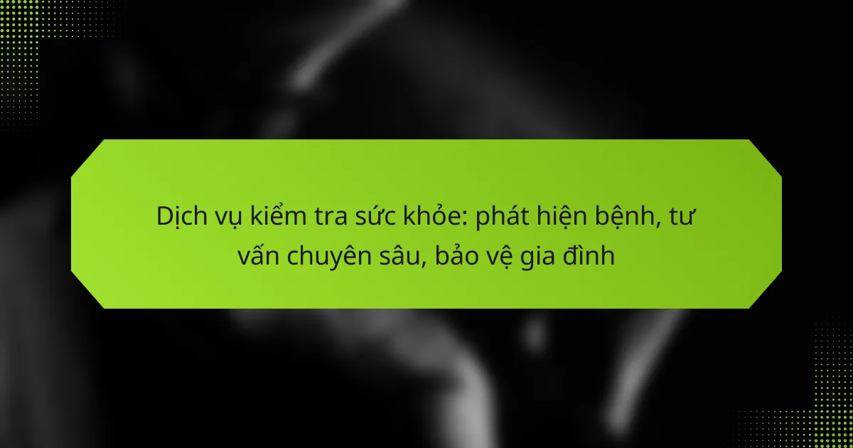 Dịch vụ kiểm tra sức khỏe bao gồm các xét nghiệm, kiểm tra và tư vấn nhằm đánh giá tình trạng sức khỏe của cá nhân. Những dịch vụ này có thể được thực hiện tại bệnh viện, phòng khám hoặc các trung tâm y tế chuyên nghiệp. Mục tiêu chính là phát hiện sớm các bệnh lý và cung cấp thông tin cần thiết để cải thiện sức khỏe.