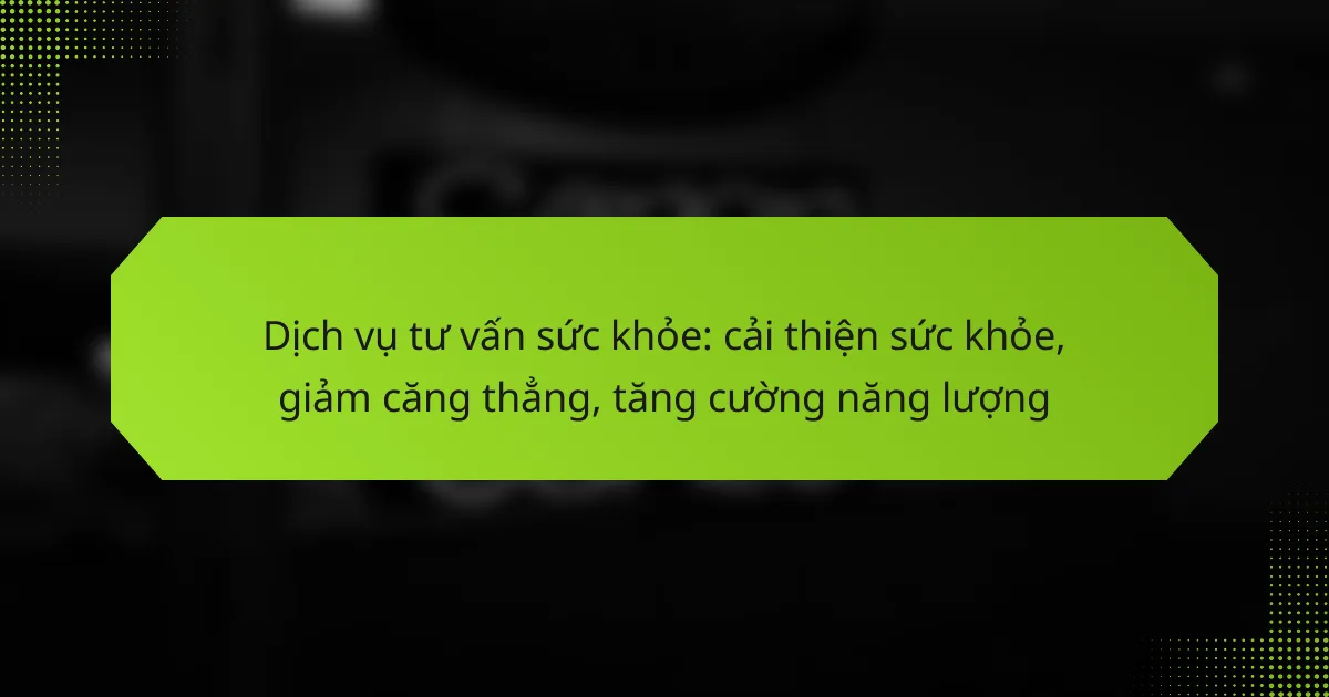 Dịch vụ tư vấn sức khỏe cung cấp giải pháp hiệu quả để cải thiện sức khỏe tổng thể, giảm căng thẳng và tăng cường năng lượng. Với các phương pháp như tư vấn dinh dưỡng, tâm lý và thể dục, người dùng có thể nâng cao chất lượng cuộc sống và quản lý các vấn đề sức khỏe một cách hiệu quả.